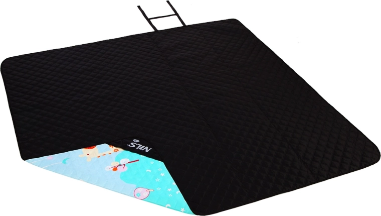 De royale afmetingen van 200 × 195 cm bieden comfortabele ruimte voor het hele gezin. Opgevouwen (ca. 43 × 31 × 12 cm) past het in de kinderwagen, auto of rugzak. Dankzij de stevige afwerking en stiksels is het klaar voor dagelijks gebruik tijdens picknicks, op het strand, festivals en als onderlaag in de tent.