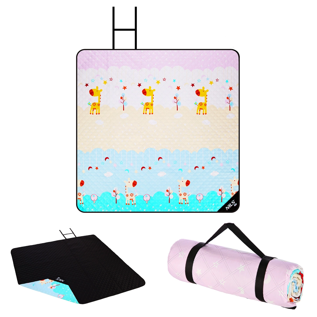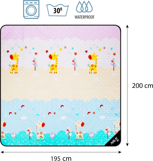 De afmetingen van 200 × 195 cm bieden genoeg plek om te zitten, liggen en spelen. Het aangename oppervlak en de vrolijke motieven maken elke picknick gezelliger.