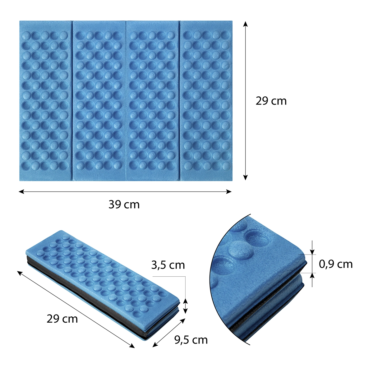 De vier opvouwbare panelen klappen als een harmonica dicht, waardoor het matje na het opvouwen minimale ruimte in de rugzak inneemt. Makkelijk schoon te maken en klaar voor direct gebruik, altijd en overal.