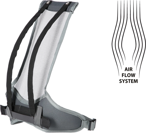 Het mesh rugsysteem scheidt de rugzak van de rug, bevordert de luchtstroom en vermindert transpiratie. De stalen versteviging helpt het gewicht te verdelen en verhoogt de stabiliteit tijdens het lopen.