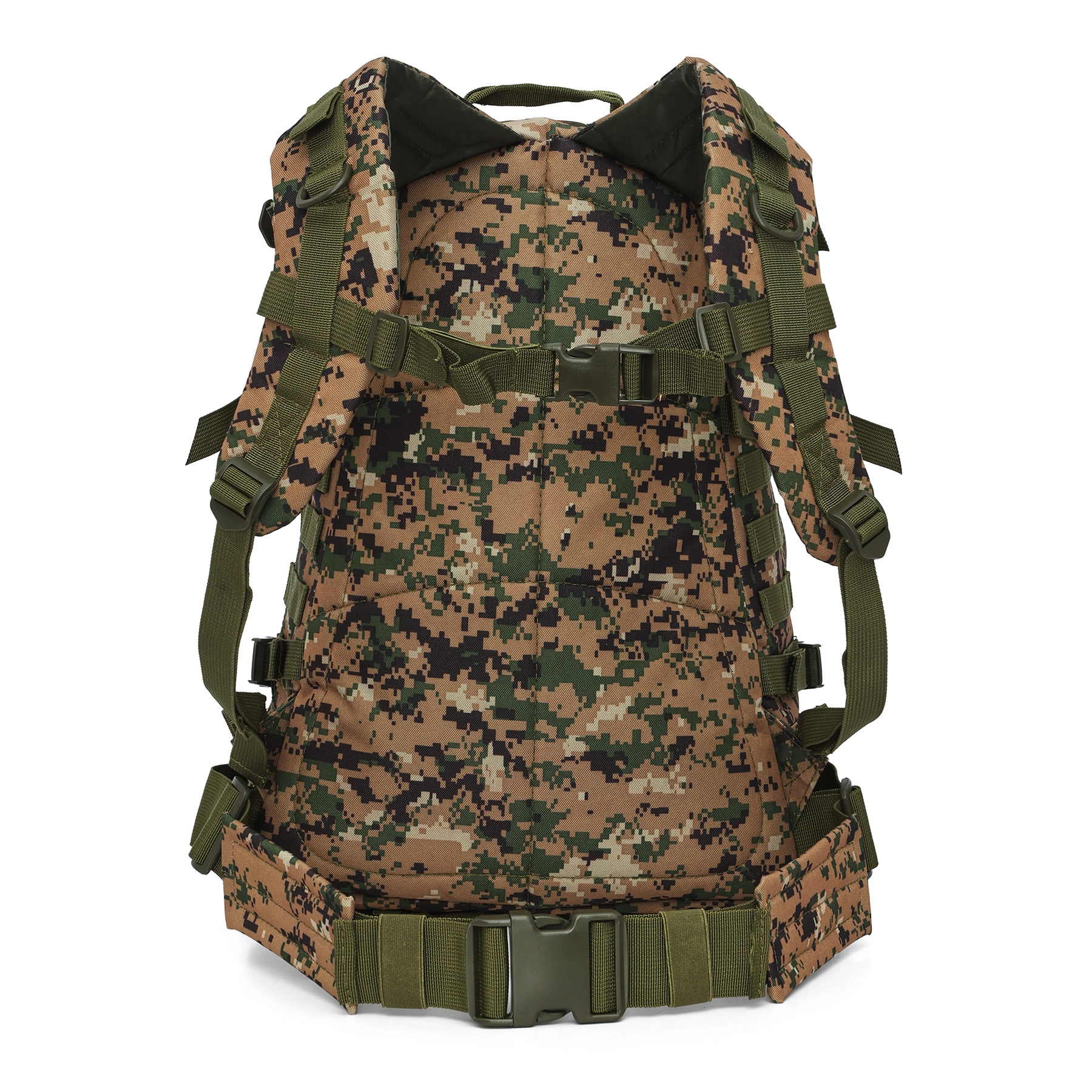 MOLLE-stijl webbing, externe banden en lussen maken het eenvoudig om een slaapmat, slaapzak of stokken te bevestigen en alles binnenin geordend te houden.