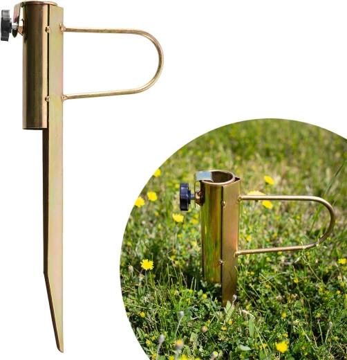 Robuust staal weerstaat belasting in het terrein en zorgt voor betrouwbare verankering van de parasol in de tuin en bij het water.