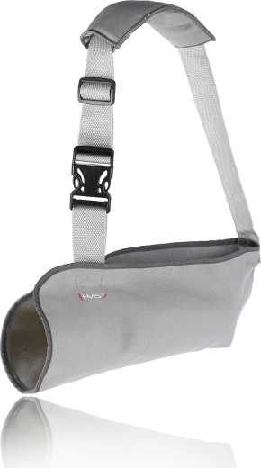 De praktische armsling HMS TE1194 biedt betrouwbare stabilisatie van de bovenste ledemaat tijdens de revalidatie. Dankzij de lichte en duurzame polyesterstof is hij comfortabel voor de hele dag en gemakkelijk te onderhouden. De verstelbare band met snelsluitgesp maakt aan- en uittrekken eenvoudig en helpt beweging en belasting te beperken van de gewonde arm na het verwijderen van het gips.