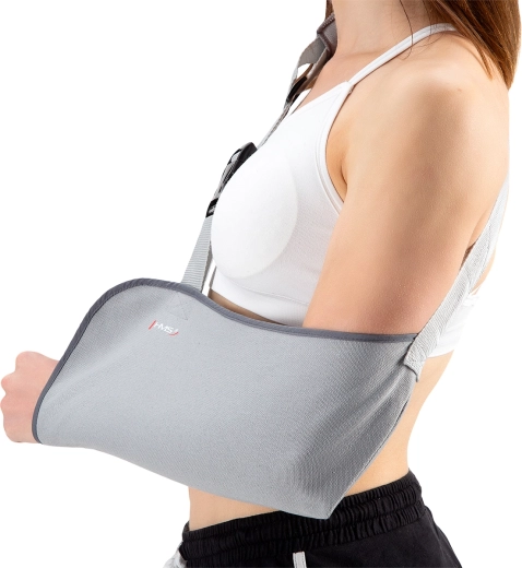 De textiele slingtas ondersteunt de onderarm veilig en fixeert de arm in een comfortabele positie, waardoor pijn vermindert en ongewenste beweging tijdens het herstel wordt voorkomen.