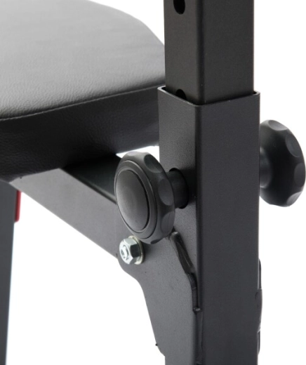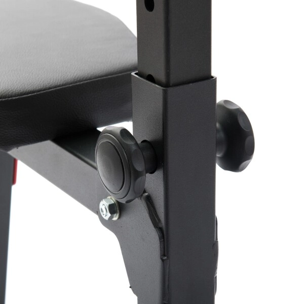 Ergonomisch gevormde bekleding van hoogwaardige synthetische leder met dubbele stiksels biedt comfort, ook bij zware trainingen. Afleghaken met grof beschermrubber minimaliseren geluid en voorkomen krassen aan de stang en de constructie. De poedercoating beschermt het frame tegen slijtage en corrosie en rubberen voetjes houden de bank stevig op zijn plaats zonder de vloer te beschadigen.