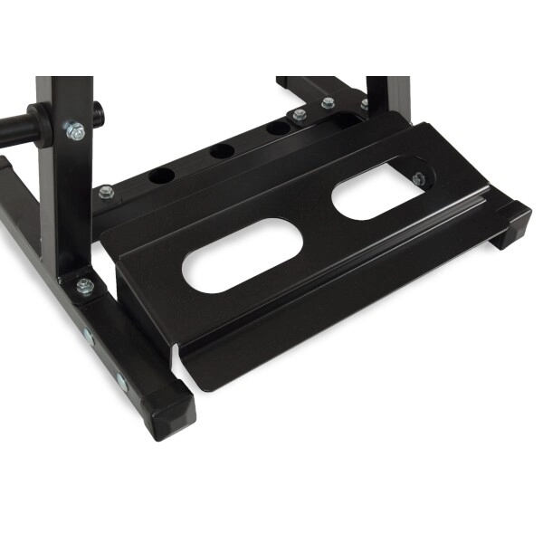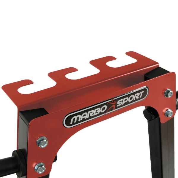 Houd je homegym perfect geordend. De standaard voor schijven en stangen Marbo Sport MH-S207 combineert hoge stabiliteit, maximale functionaliteit en een lange levensduur. De robuuste stalen constructie met 40×40 mm profielen is getest volgens strenge Europese normen en kan tot 300 kg belasting aan.