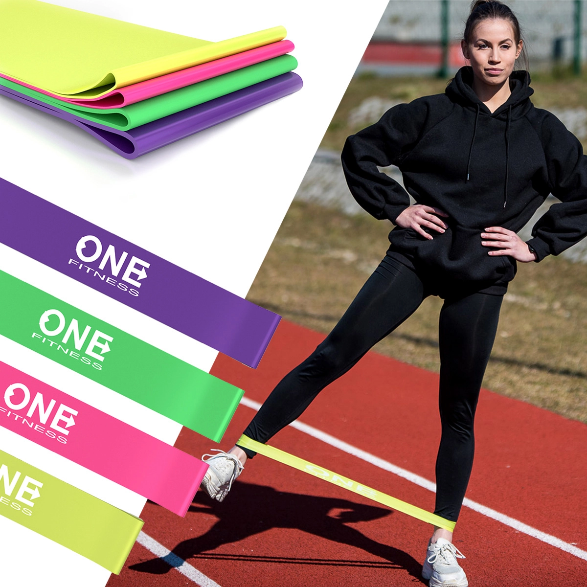 Praktische set van vier lus-expanders van ONE Fitness voor effectieve training thuis en buiten. Biedt meerdere weerstandsniveaus, is compact en licht voor op reis en dankzij het slijtvast rubbermateriaal bestand tegen veeleisende omstandigheden. Ideaal voor full‑body krachttraining, activatie van de bilspieren, mobiliteit en revalidatie.