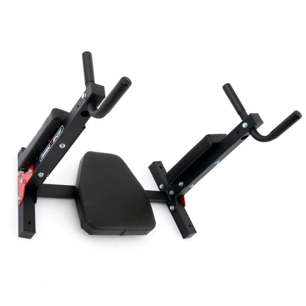 Het frame van 40 × 40 mm profiel biedt uitstekende stijfheid en veiligheid, zelfs bij intensieve krachttraining met dips en beenheffingen.