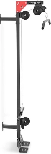 De MARBO Sport MH-W101 2.0 is een ruimtebesparende wandkatrol die je homegym verandert in een veelzijdig station voor trekoefeningen. Drie katrollen met kogellagers en twee stalen kabels met rubberen stoppers garanderen een soepele, stille en veilige werking. Dankzij de slede met twee pinnen (Ø 25 mm) laad je eenvoudig tot 140 kg en kun je trainen met zowel standaard- als olympische schijven.