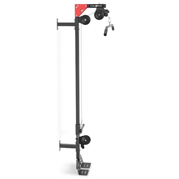 Compacte boven- en onderkatrol voor wandmontage van MARBO Sport voor een effectieve training van armen, schouders en rug. Biedt een stevige stalen constructie, soepele loop dankzij gelagerde katrollen en een maximale belasting tot 140 kg. Dankzij twee laadpinnen kun je zowel standaard als olympische schijven gebruiken, terwijl robuste voetsteunen stabiliteit bieden bij oefeningen met de onderkatrol. Inclusief een brede lat-pulldown greep.