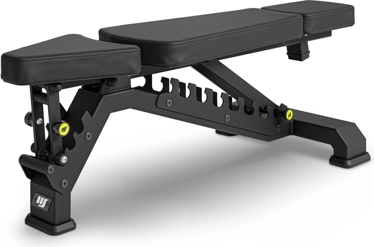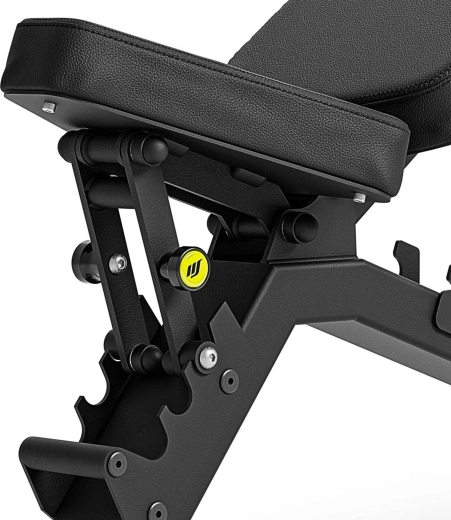 De MARBO PRO 2.0 bank is ontworpen voor veeleisende gebruikers en commercieel gebruik. Dankzij het verstellen via een “tandrek” met borgpen stel je de helling van rugleuning en zitting snel en veilig in. De negatieve positie van de rugleuning is beschikbaar door eenvoudig de stop te verwijderen en te laten rusten op de rubberen aanslag – ideaal voor gevarieerde krachttraining van borst, schouders en triceps.