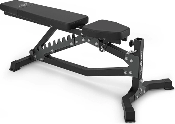 De MARBO Sport MS-L102 2.0 bank is ontworpen voor maximale precisie, comfort en veiligheid. Laser-gesneden stopbeugels maken fijne afstelling van de rugleuning in 10 hoeken mogelijk, van bijna rechtop tot een schuine bank van -21°. De zitting stel je in op 3 posities met een stevige borgpen. De sterke constructie van stalen profielen 50 × 50 × 2 mm garandeert uitzonderlijke stabiliteit en een draagvermogen tot 300 kg.
