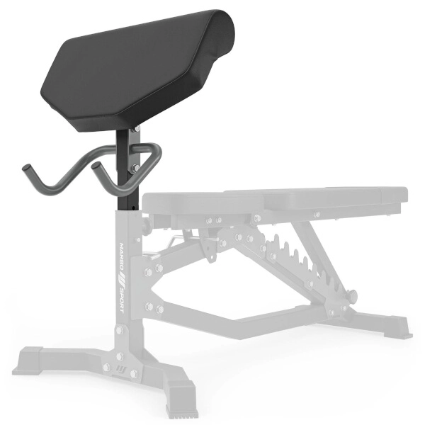 De MARBO MS-A101 2.0 breidt je fitnessbank uit met een preacher curl voor precieze en veilige geïsoleerde oefeningen voor biceps en triceps. De robuuste constructie van stalen profiel, een stevige plaat en dicht schuim met een duurzame bekleding zorgen voor comfort, zelfs bij intensieve trainingen.