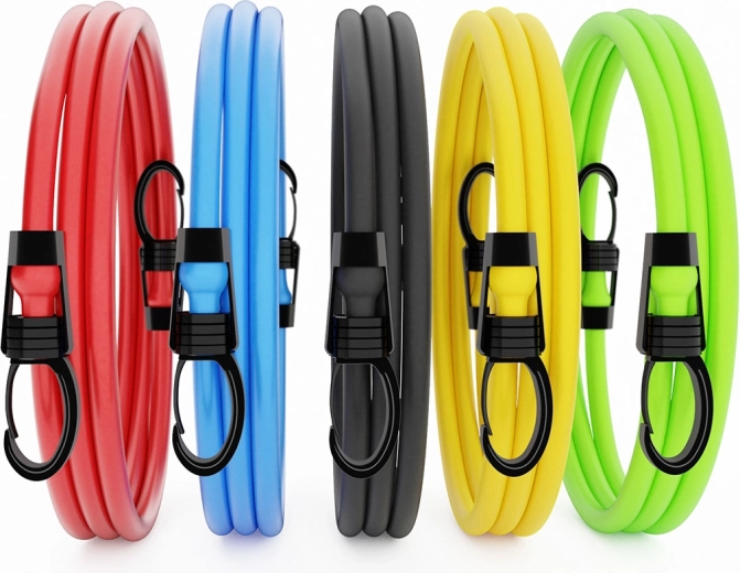 In de set zitten comfortabele handgrepen, enkelbanden en een deuranker, zodat je tientallen oefeningen kunt uitvoeren voor rug, armen, benen en core. Ideaal voor thuis, op reis of buiten – train effectief, stil en met minimale ruimtebehoefte.