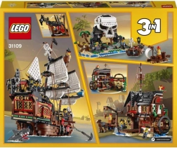 LEGO Creator 3-in-1 Piratenschip biedt kinderen de mogelijkheid om drie verschillende speelgoedmodellen te bouwen. Je kunt een piratenschip bouwen, het ombouwen tot een piratenherberg of tot het griezelige Schedeleiland. Bovendien kunnen kinderen hun fantasie de vrije loop laten en iets geheel nieuws creëren!