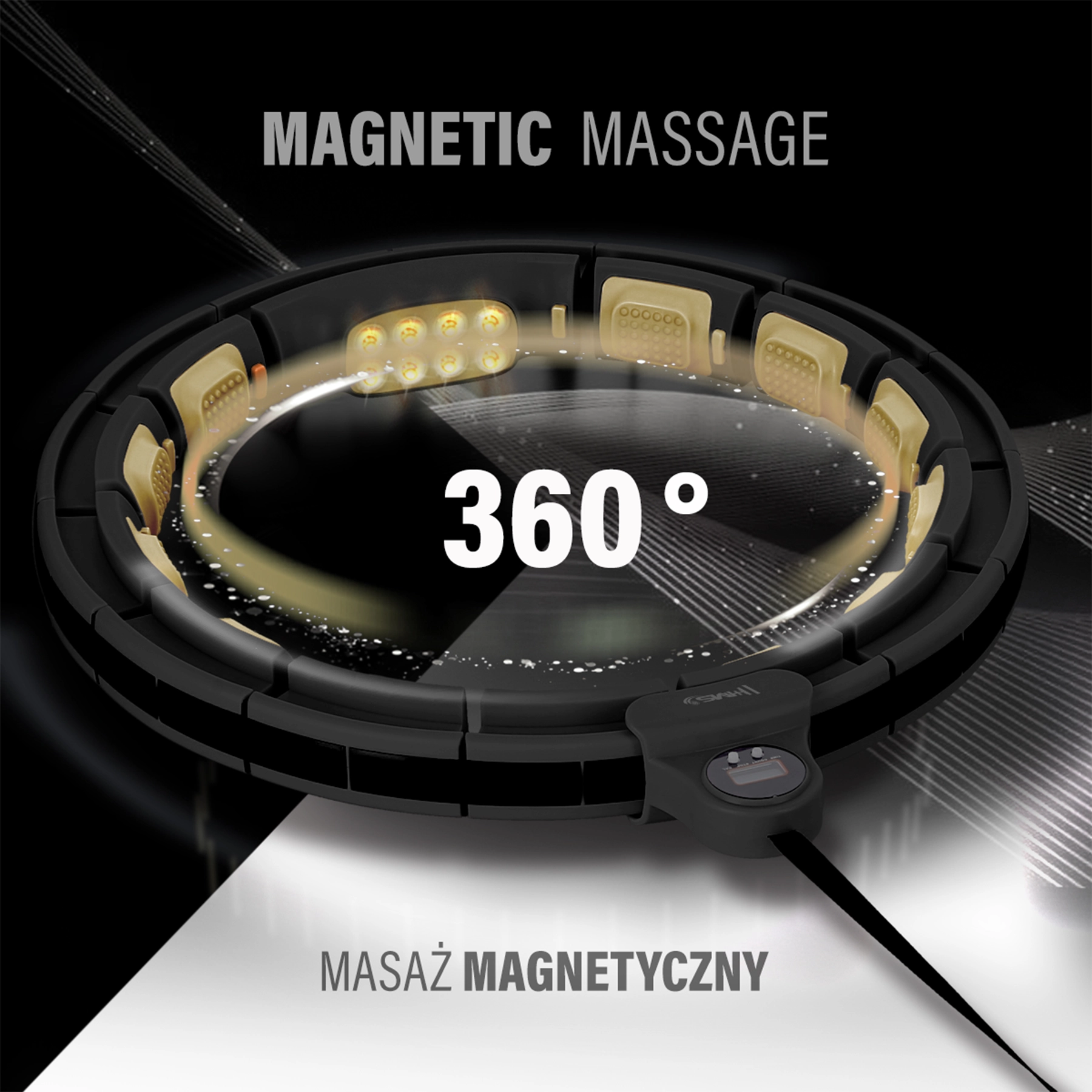 Flexibele massagekopjes dempen schokken en masseren de taille op een aangename manier. Een speciaal segment met 8 negatief gepolariseerde magneten ondersteunt de doorbloeding en het lymfestelsel.