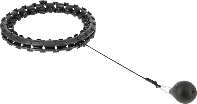 De slimme hula-hoepel HMS HHW01 bestaat uit 24 kliksegmenten met een interne rail. Rondom loopt een anker met zes wieltjes en aan een verstelbaar koord (22–38 cm) is een gewicht van 400 g bevestigd. Zo ontstaat vloeiende weerstand en een effectieve middelpuntvliedende kracht – hoe langer het koord, hoe hoger de intensiteit. De hoepel is geschikt voor een tailleomtrek van 46–105 cm en de binnendiameter is instelbaar tussen 15–34 cm. Massagekopjes met veren dempen trillingen en masseren tegelijk aangenaam de taille.