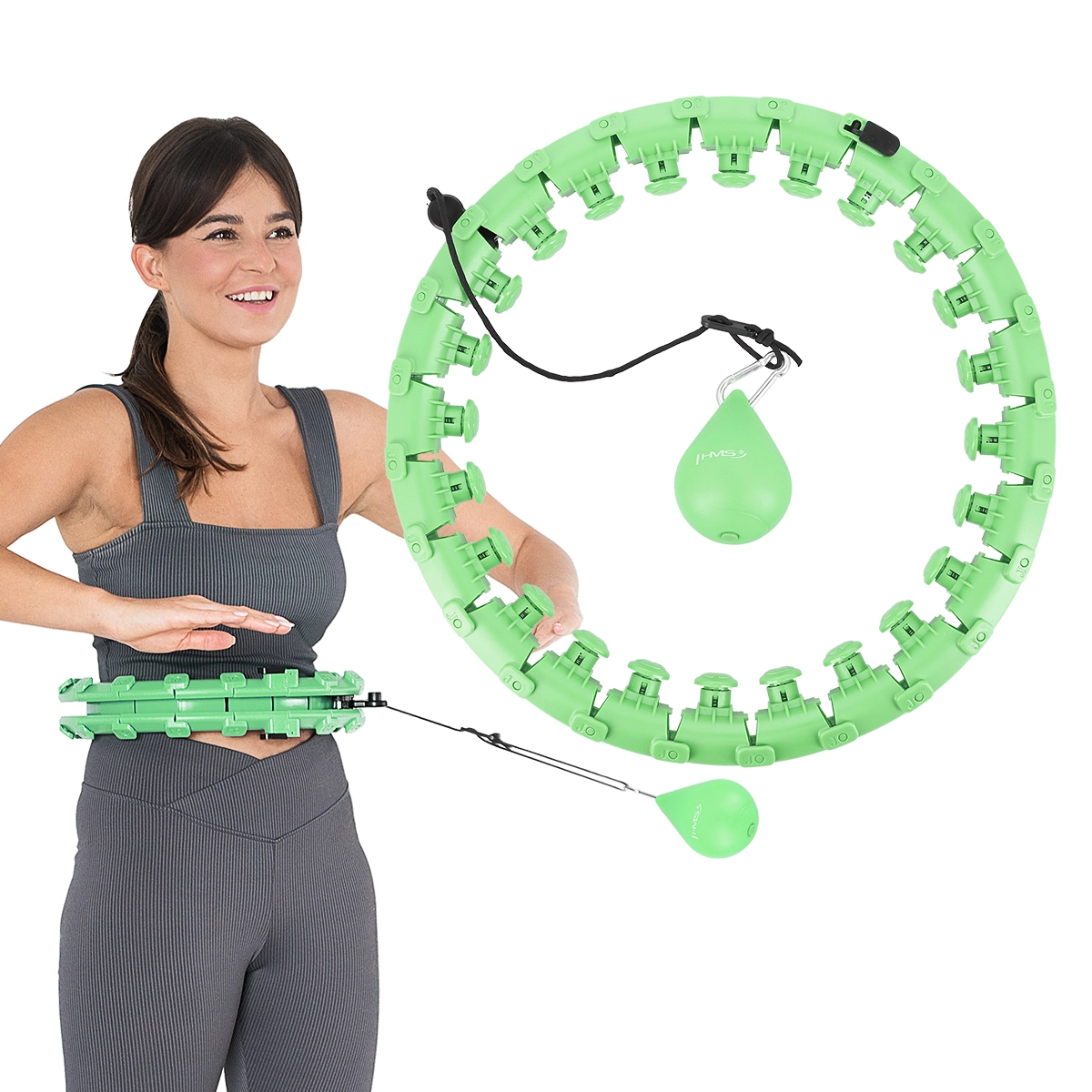De HMS-set combineert de slimme HHW01-hoepel met roterend gewicht en veerkrachtige massagedoppen voor comfortabel en soepel trainen, met de afslankende neopreenriem BR163 voor extra effect. Dankzij de modulaire constructie pas je de hoepel eenvoudig aan jouw tailleomtrek aan, stel je de koordlengte in en daarmee ook de trainingsintensiteit. Met regelmatige training versterk je effectief de core, en verbeter je coördinatie en stofwisseling.