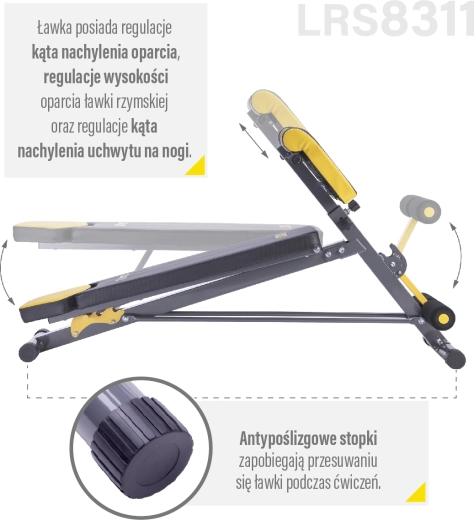 De HMS Premium LSR8311 is een doordachte multifunctionele bank voor efficiënt thuis trainen. De rugleuning kan in 3 posities worden ingesteld – van horizontaal voor oefeningen met halters tot een negatieve helling voor intensieve buikspieroefeningen. De in hoogte verstelbare preacher (dij/bicepssteun) in 7 stappen maakt een precieze afstelling mogelijk voor geïsoleerde bicepstraining en zorgt voor de juiste positie bij hyperextensie voor het versterken van de onderrug.