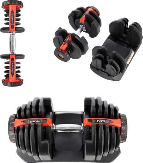 Ontdek compacte kracht in één halter. De verstelbare halter HMS SR80 met praktische standaard vervangt een volledige rek met traditionele halters en maakt snelle gewichtswissels mogelijk via draaikeuzeknoppen. Dankzij de ergonomische antislipgreep en duurzame materialen is hij ideaal voor de thuisgym en veeleisende trainingen.
