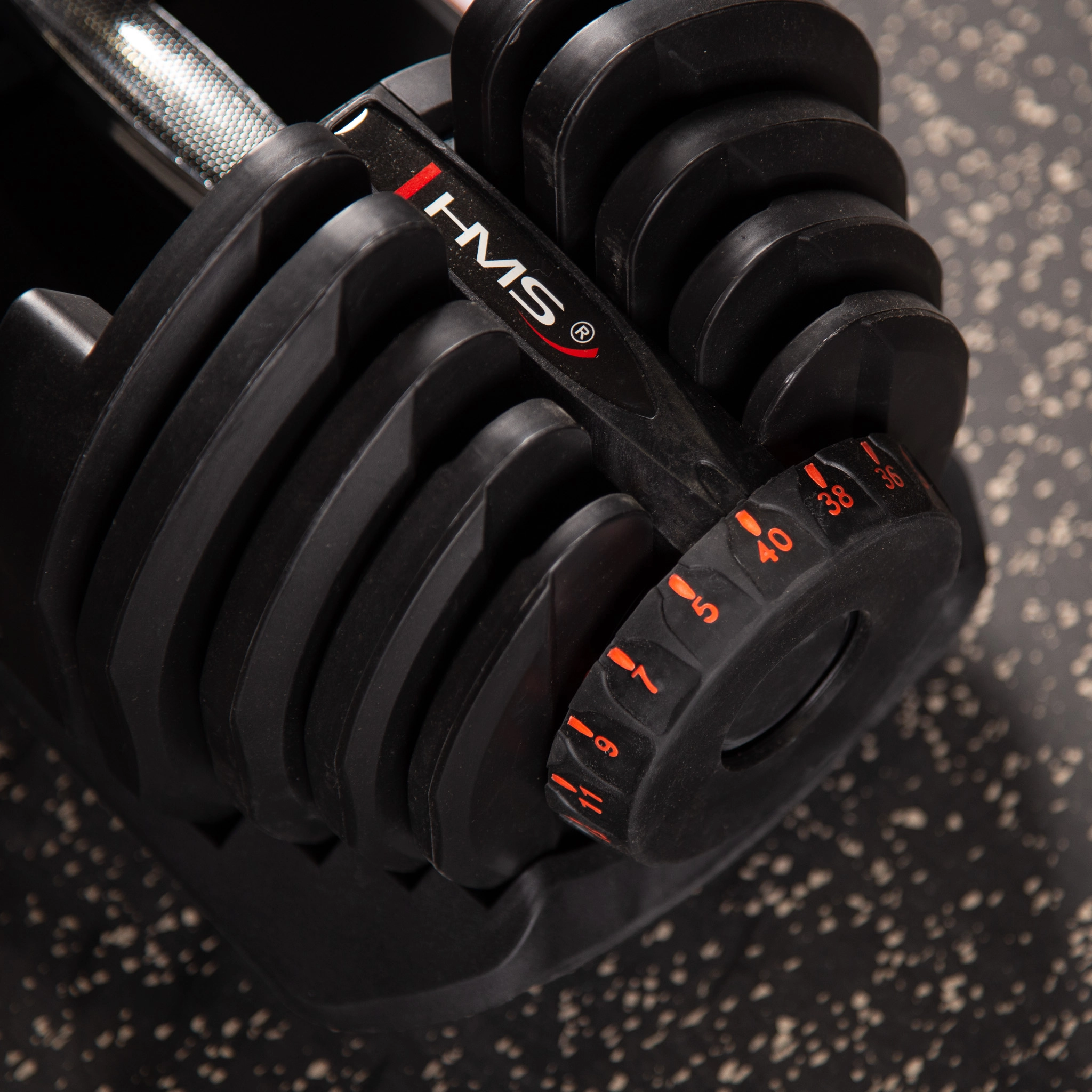 HMS SR80 is een slimme oplossing voor krachttraining zonder compromissen. Het innovatieve schijfbevestigingssysteem maakt het mogelijk om binnen seconden de gewenste massa in te stellen – zet de halter in de standaard, draai aan de keuzeknop en ga door met je set. Eén halter vervangt zo een complete set dankzij het bereik van 2,8–37,26 kg.
