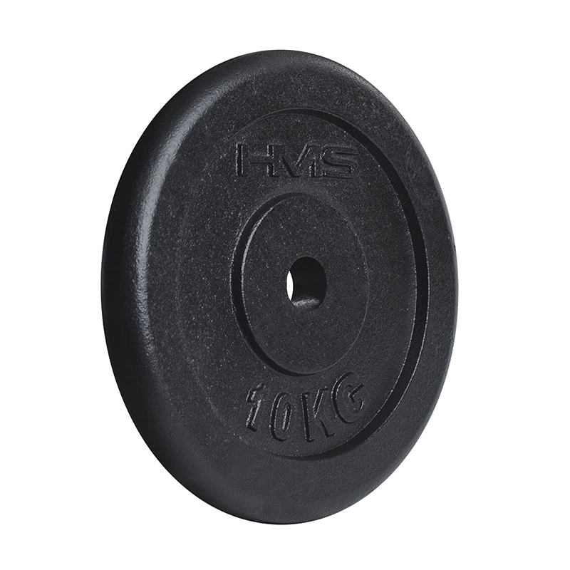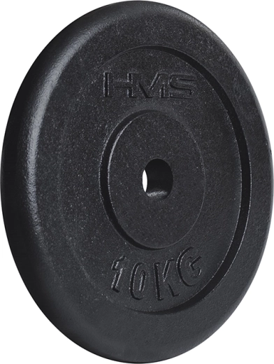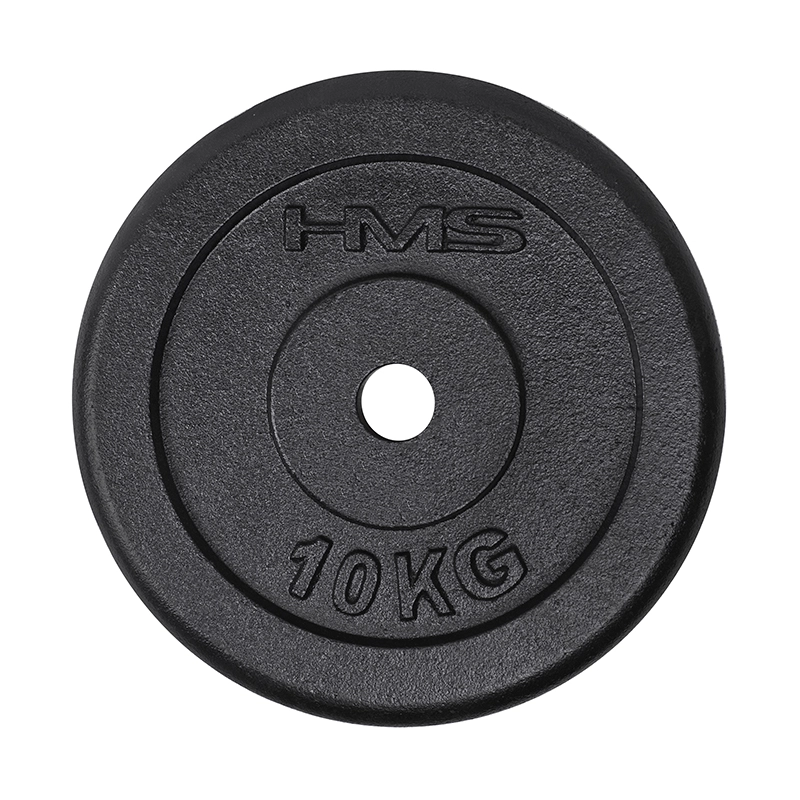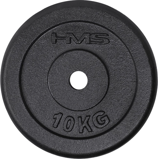 Duurzame zwarte gietijzeren HMS-schijf van 10 kg, ideaal voor krachttraining thuis en in de sportschool. Dankzij de boring met een diameter van 31 mm past hij op gangbare halterstangen en de afwerking zorgt voor lange levensduur, stabiliteit tijdens het trainen en een betrouwbare grip.