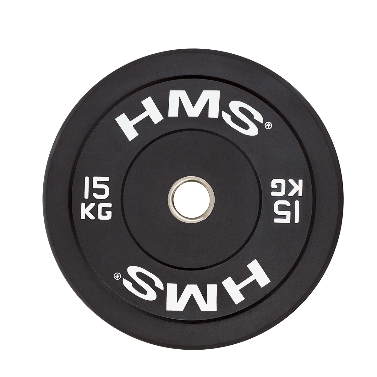 De olympische schijf HMS 15 kg is een betrouwbare keuze voor crosstraining, gewichtheffen en de homegym. De SBR- en NR-rubbersamenstelling absorbeert effectief schokken, zodat zowel de schijf als de vloer beschermd blijven, ook bij het droppen. De roestvrijstalen centerinzet vergemakkelijkt het opladen op de stang en voorkomt krassen op de sleeves.