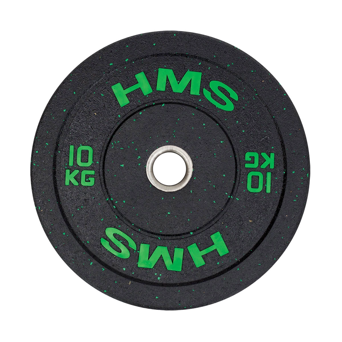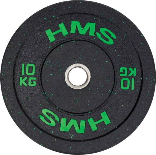 De HMS bumperplaat 10 kg is ontworpen voor intensief gebruik in sportscholen en homegyms. De duurzame mix van rubber met een stalen centerinzet dempt schokken, vermindert geluid en beschermt zowel de halter als de vloer. De standaarddiameter van 450 mm en een opening van 51 mm garanderen compatibiliteit met olympische stangen.