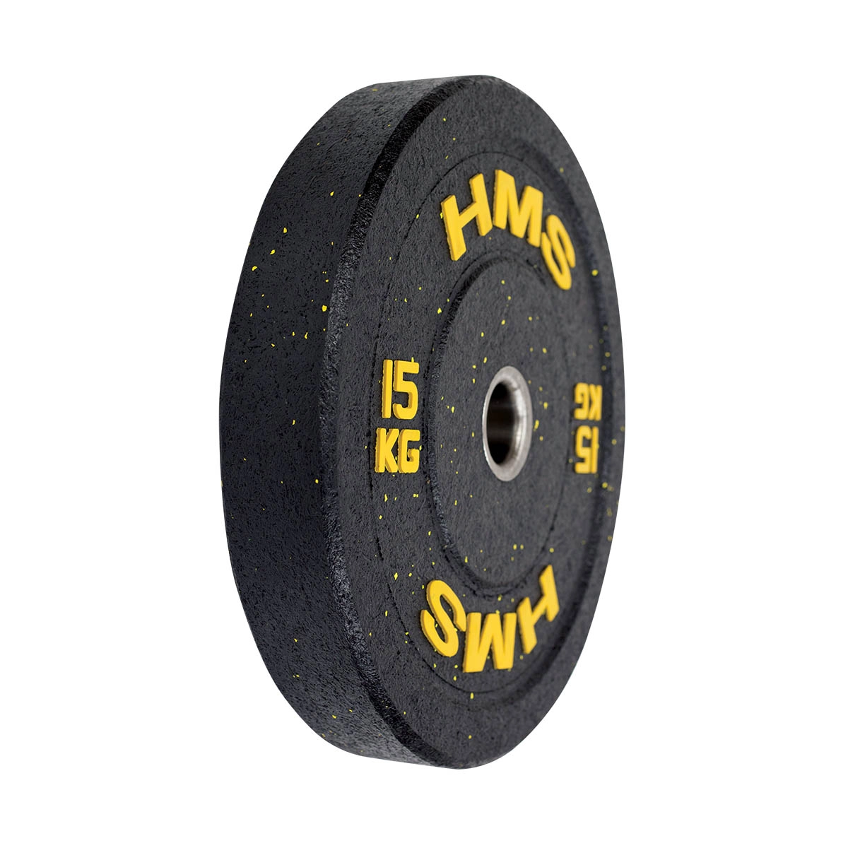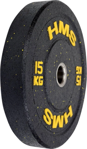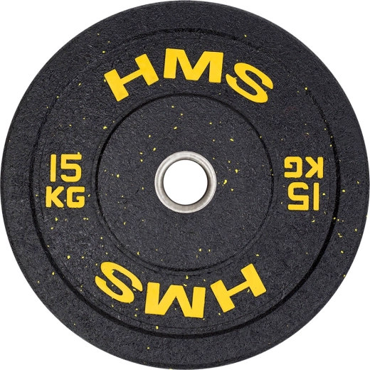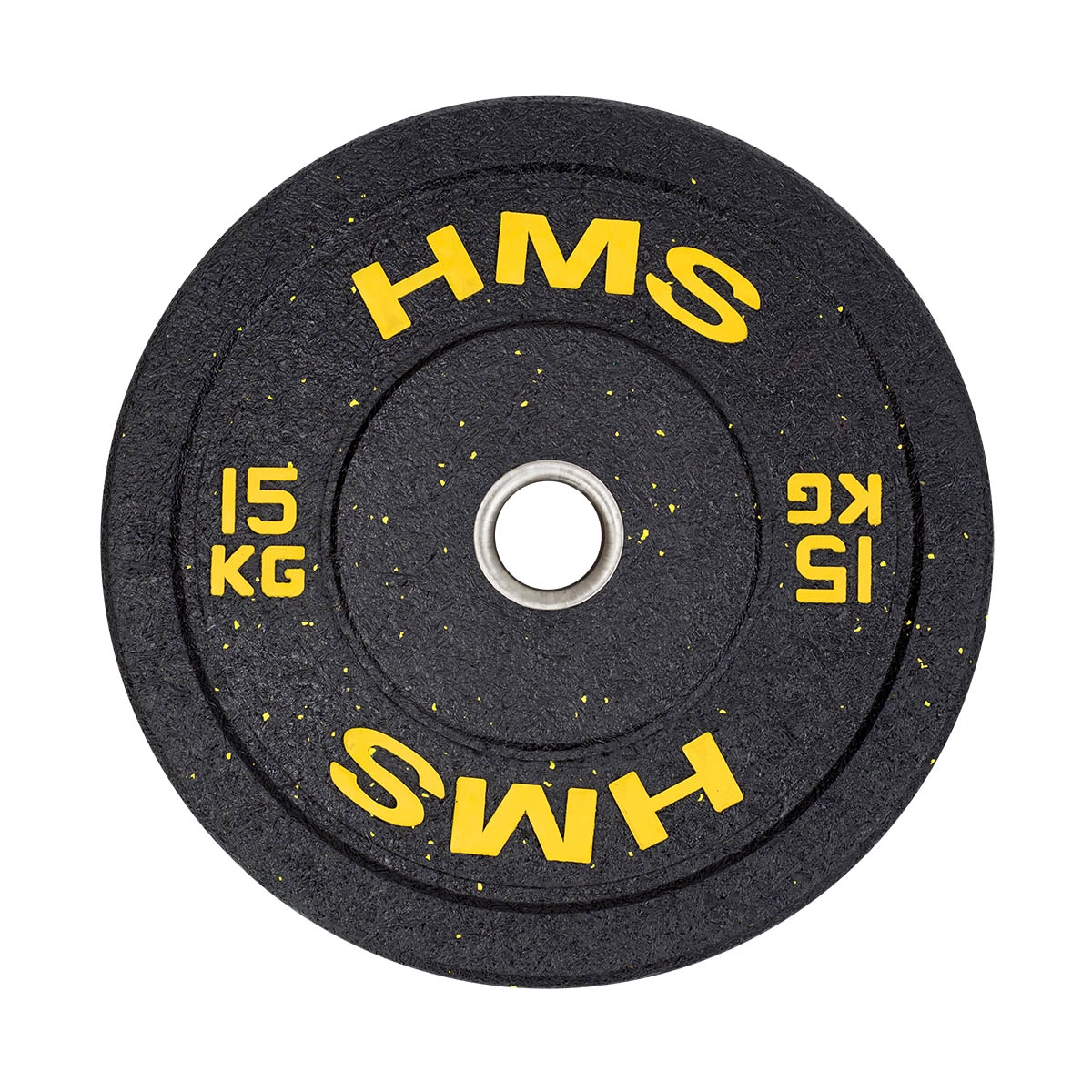 Train zeker en veilig met de olympische bumper schijf HMS 15 kg. Gemaakt van gehard rubbergranulaat dat schokken uitstekend absorbeert, de vloer beschermt en geluid dempt bij valpartijen. De stalen middeninzet garandeert soepel plaatsen op de stang en een lange levensduur, ook bij frequent gebruik.