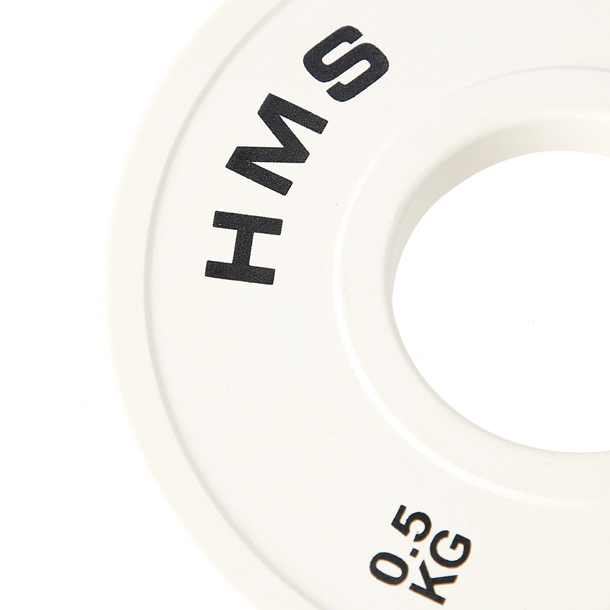 De HMS fractie-schijven zijn ontworpen voor stapsgewijze verhoging van de belasting in kleine stappen, wanneer standaard toenames van 5–10 kg niet meer volstaan. De stalen kern met rubberen coating dempt schokken, beschermt zowel de vloer als de stangen en verbetert bovendien het hanteercomfort. De boring van 51 mm garandeert compatibiliteit met alle standaard olympische stangen.