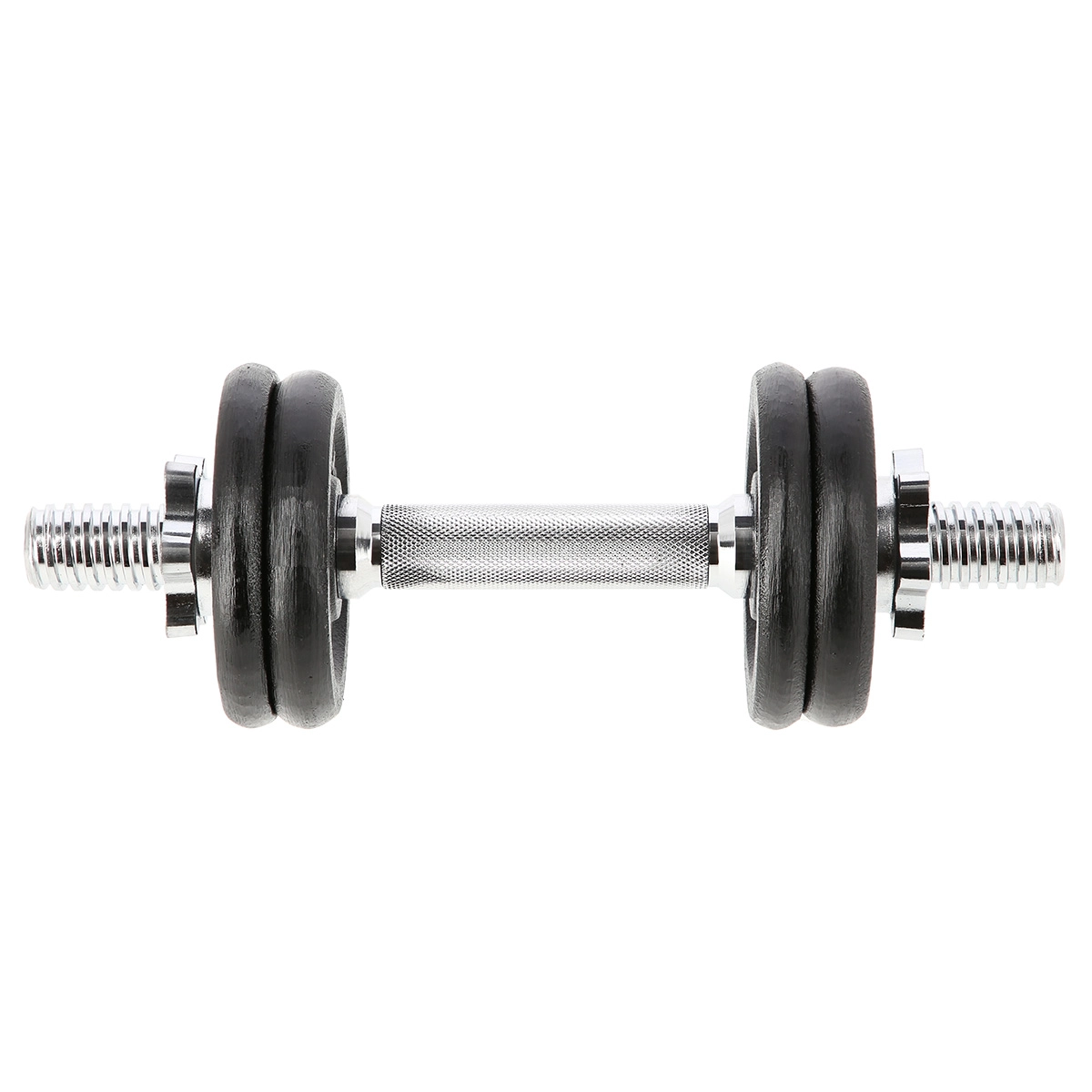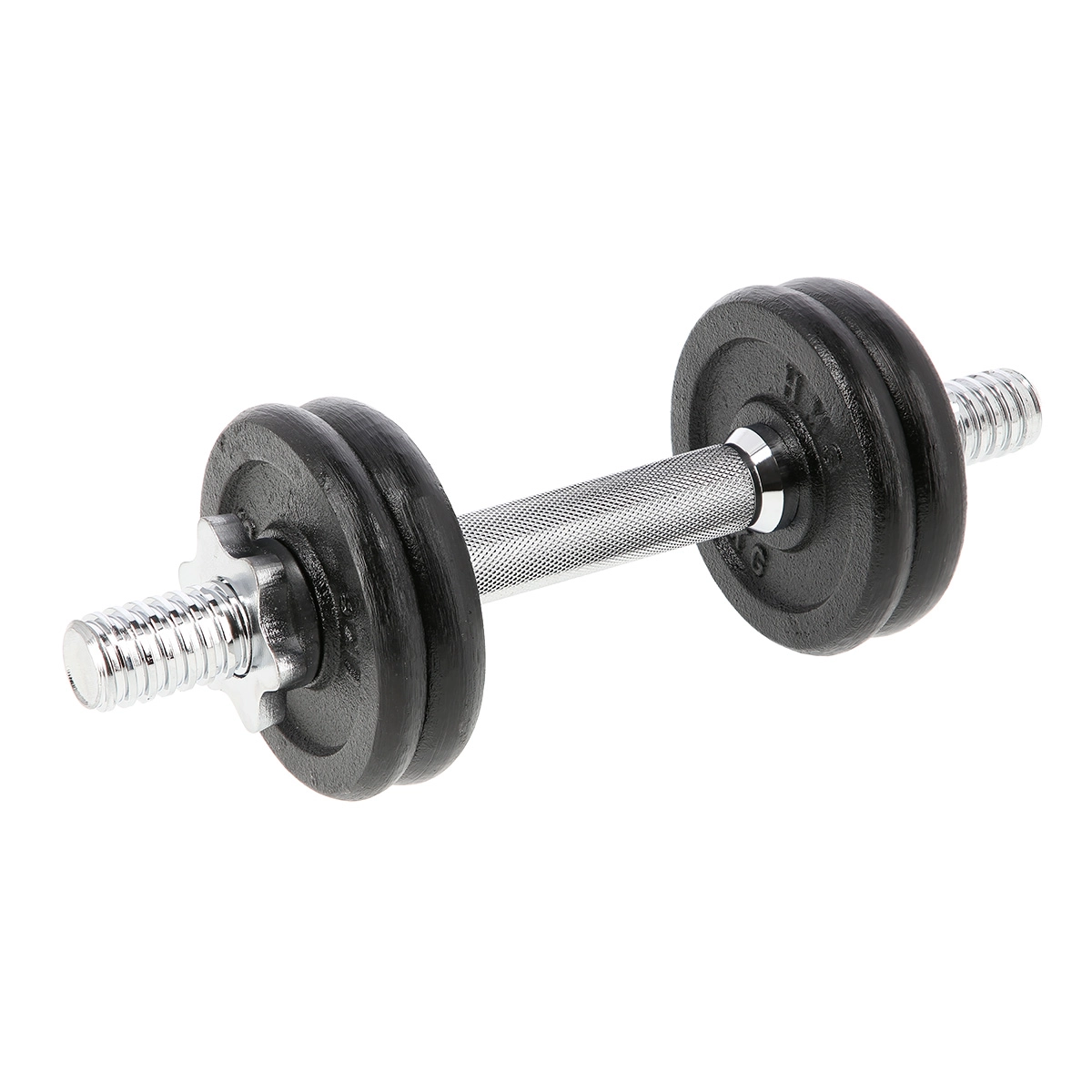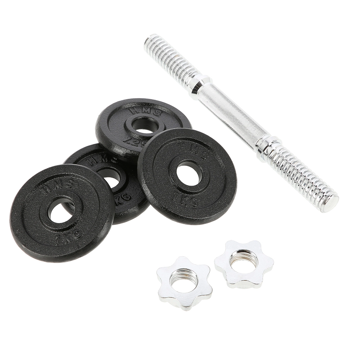 De set bevat gietijzeren schijven van 1 kg en 1,25 kg. Je past het haltergewicht eenvoudig aan tot 7 kg, afhankelijk van je trainingsdoel.
