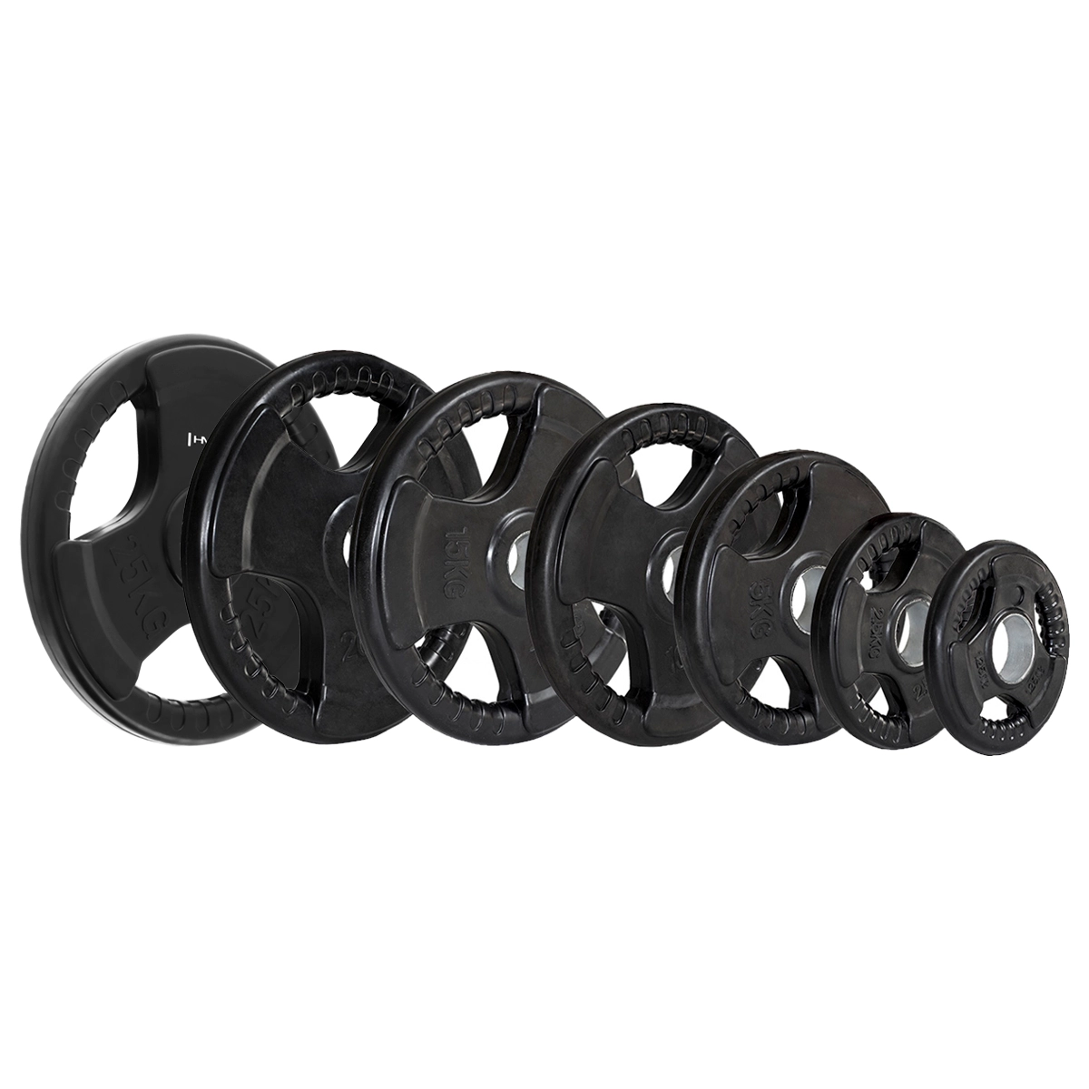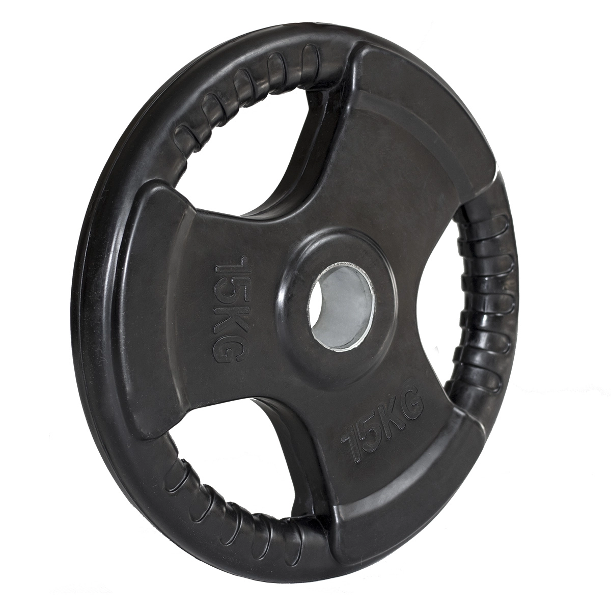 De olympische Tri‑Grip schijf 15 kg combineert een duurzame constructie met maximaal gebruikscomfort. Dankzij de drie grote grepen verplaats je de schijf gemakkelijk en laad je snel op en af, terwijl het gerubberde oppervlak schokken dempt, geluid reduceert en de levensduur verlengt.