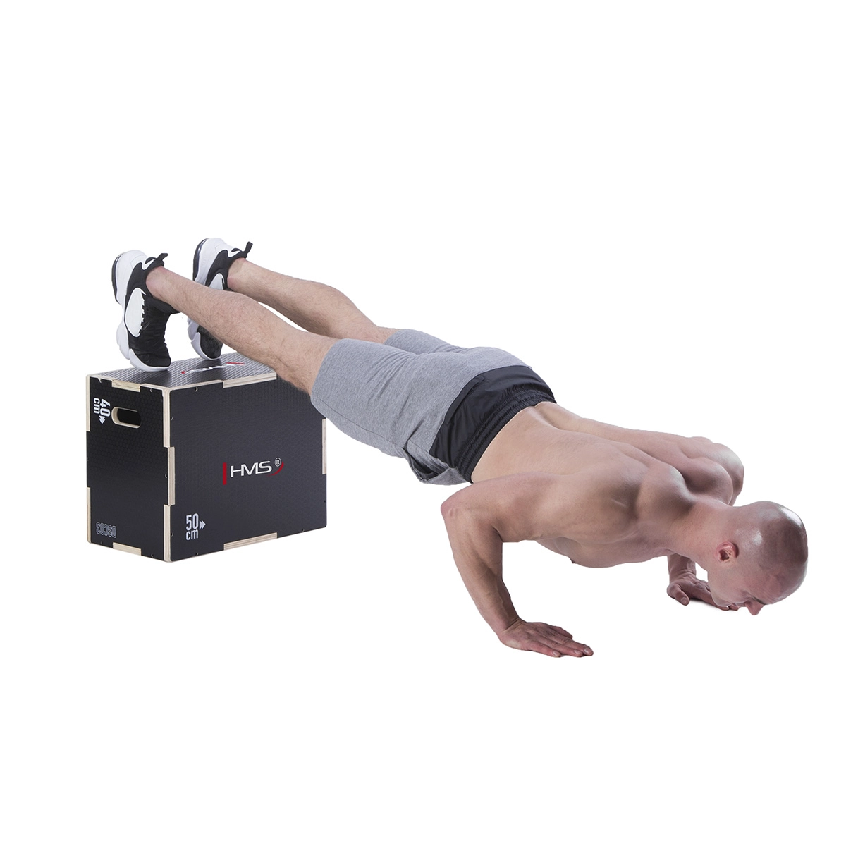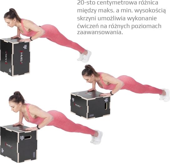 De plyometrische box HMS DSC03 is een betrouwbare keuze voor cross‑training, krachttraining en thuistraining. Dankzij de slimme “puzzel”-constructie sluiten de wanden naadloos op elkaar aan, wat zorgt voor hogere stijfheid en betere krachtsverdeling bij de landing. De speciale oppervlakteafwerking vermindert het wegglijden van schoenen en is eenvoudig te reinigen, zodat de box intensief gebruik in de sportschool en thuisfitness moeiteloos aankan.
