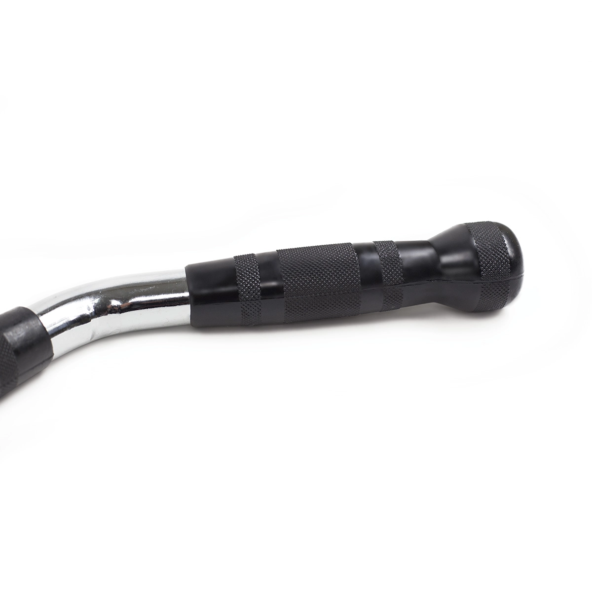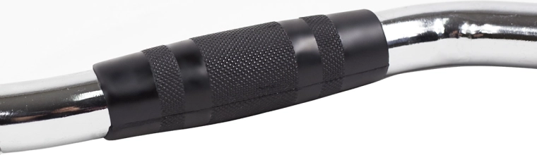 De gebogen vorm vermindert druk op de polsen en ondersteunt een correcte techniek bij rows, lat pulldowns en tricepsextensies.