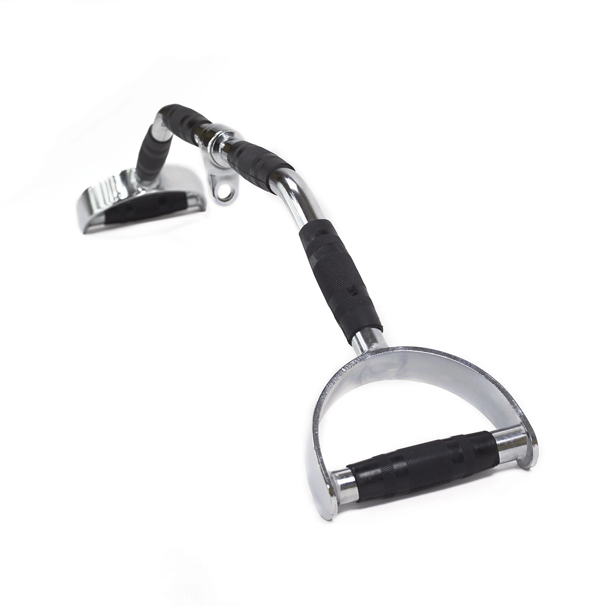 Meerdere greepposities (smal, medium, breed) maken variatie in spieraandacht mogelijk ten opzichte van rechte adapters en zorgen voor gevarieerdere trainingen. De massieve stalen constructie biedt een lange levensduur en stabiliteit, ook bij intensief gebruik in zowel home- als commerciële gyms.