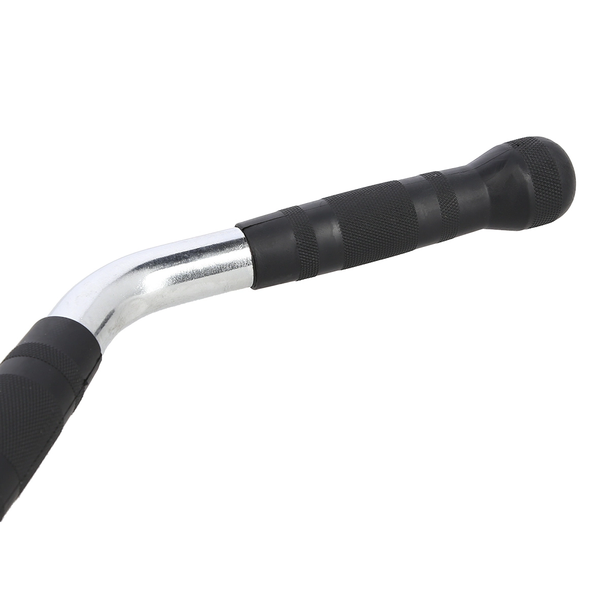 De robuuste, verchroomde constructie met een centraal oog van 14 mm diameter zorgt voor een snelle en veilige bevestiging aan alle gangbare katrolmachines. Verschillende hart-afstanden en griplengtes maken een natuurlijke instelling mogelijk voor oefeningen zoals lat pulldowns, seated rows en triceps pushdowns, voor maximale spieractivatie zonder compromissen.