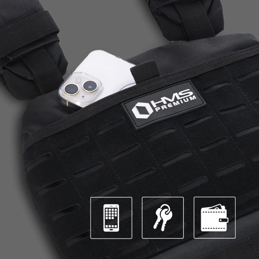 Een praktische zak houdt je telefoon of kleine spullen binnen handbereik. Kies voor HMS en til je prestaties naar een hoger niveau – het vest is een uitstekende keuze voor alle niveaus die de intensiteit willen verhogen, kracht, uithoudingsvermogen en explosiviteit willen ondersteunen.