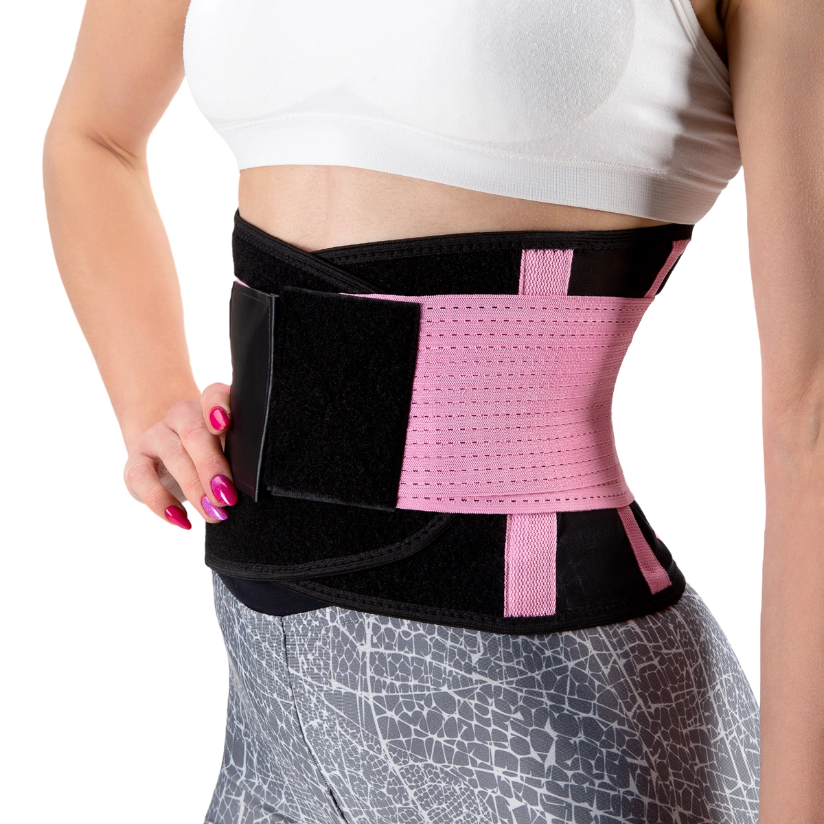 Er is ook een elastische extra aanspanband voor precieze regulering van de druk in de lendenstreek. Ademend perforatie en een lichte constructie zorgen voor comfort, zelfs bij langdurig dragen – of u nu traint, staat of uren zittend doorbrengt.