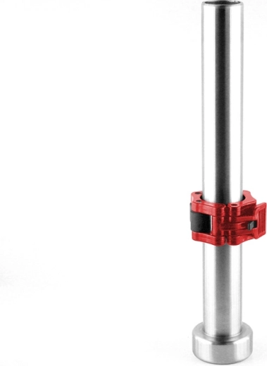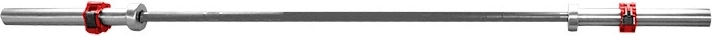 De stang is uitgerust met 8 naaldlagers (4 aan elke kant) die zorgen voor een soepele en stille rotatie van de sleeves. Het gekartelde greepgedeelte met een diameter van 30 mm biedt een stevige en comfortabele grip, ook bij zware sets. De verpakking bevat twee kunststof sluitingen met interne rubberen elementen voor stabiele fixatie van de schijven.