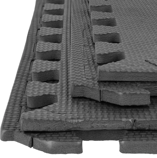 De delen worden verbonden met puzzelvergrendelingen, waardoor je eenvoudig grotere oppervlakken kunt bedekken en de vorm aan de ruimte kunt aanpassen. Het getextureerde, antislipoppervlak zorgt voor stabiliteit tijdens beweging en eenvoudig onderhoud – afnemen met een vochtige doek is voldoende.