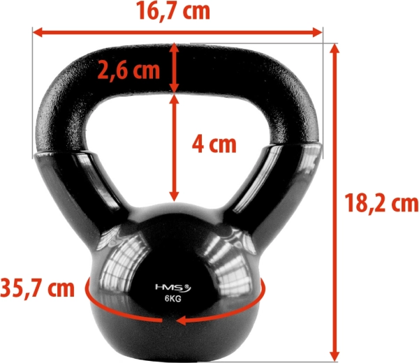 De Kettlebell HMS 6 kg is een betrouwbare keuze voor functionele full-body training. De gietijzeren constructie met vinylcoating dempt geluid en beschermt de vloer, terwijl de vlakke basis zekerheid biedt bij het neerzetten. Dankzij de brede greep is hij ideaal voor zowel beginners als gevorderden.