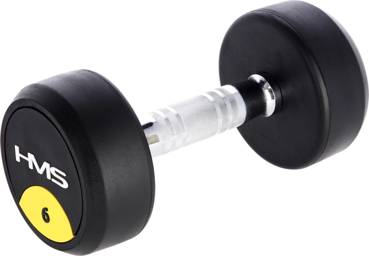 De HMS HG Pro 6 kg dumbbell is ontworpen voor veeleisende omstandigheden in fitnesscentra en thuisgyms. De gietijzeren schijven zijn bedekt met een dikke rubberlaag die schokken minimaliseert, het geluidsniveau verlaagt en de levensduur van apparatuur en vloer verlengt. De handgreep van verchroomd staal met precieze karteling en een ergonomisch tonvormig profiel biedt een veilige en comfortabele grip, zelfs bij intensieve sets.