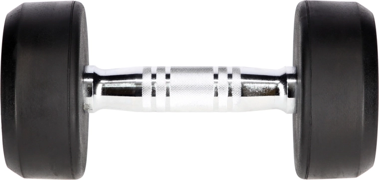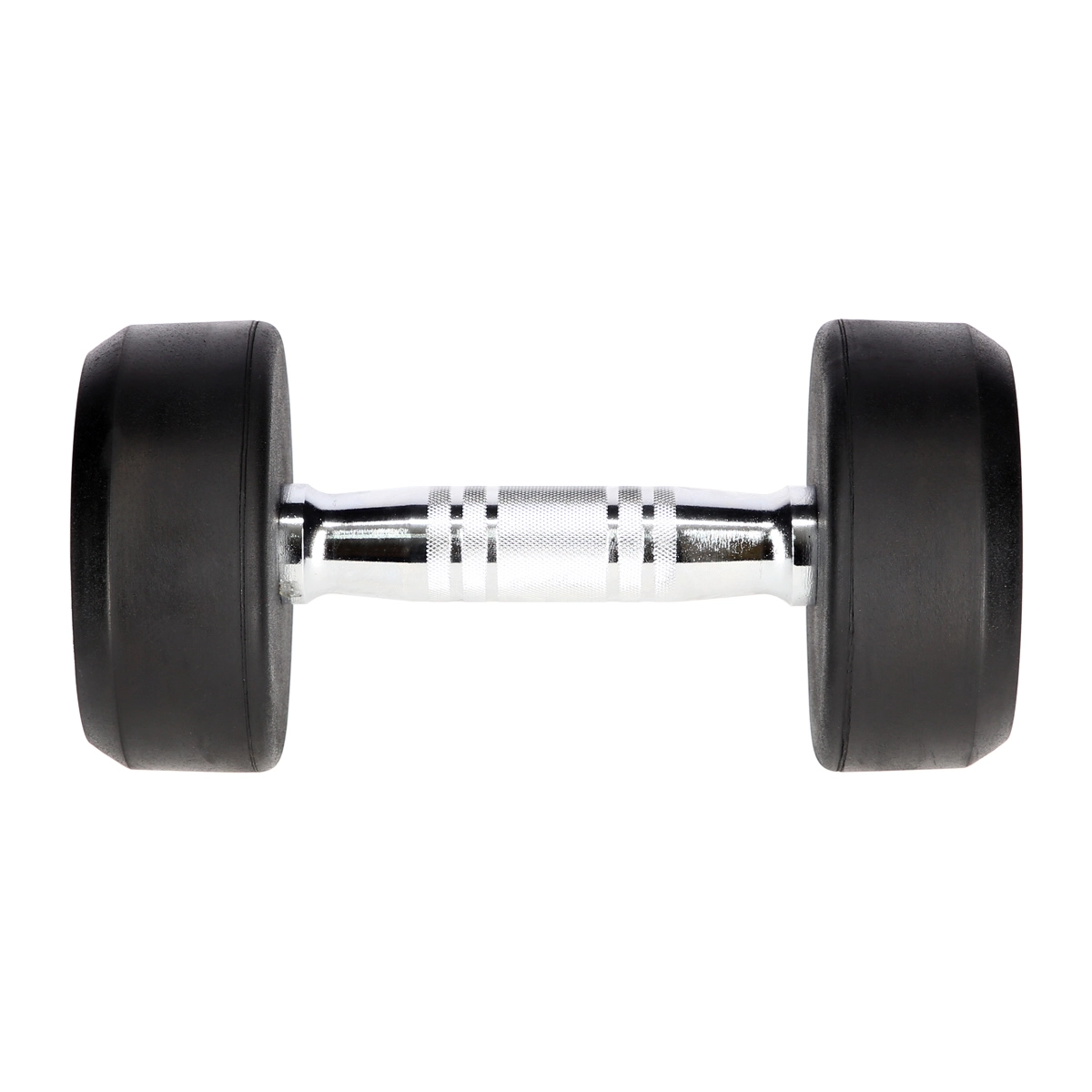 De stevige gietijzeren kern is bedekt met een dikke rubberlaag die schokken dempt, geluid reduceert en zowel de vloer als de halter tegen beschadiging beschermt.