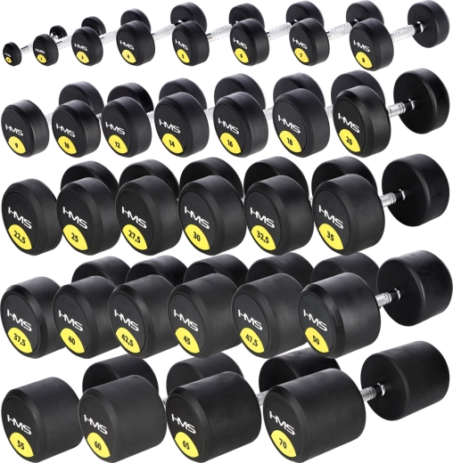 HG Pro halters zijn ideaal voor oefeningen zoals presses, bicep curls, rows en voor veelzijdige functionele training. Aan de voorzijde vind je een contrasterende gewichtsmarkering en het HMS-logo voor snelle oriëntatie op het rek.