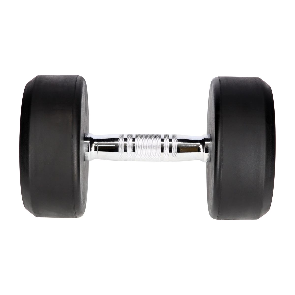 De dikke rubberlaag op de koppen van de halter dempt schokken, vermindert geluid en beschermt zowel de uitrusting als het trainingsoppervlak.