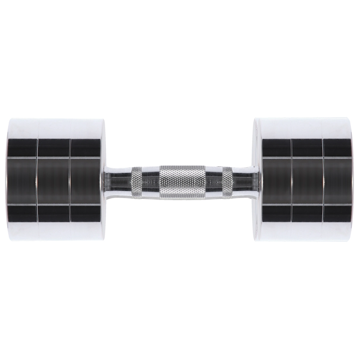 Het knurling op de greep verhoogt de wrijving, waardoor de dumbbell stevig in de hand ligt, zelfs bij bezwete handen en hogere gewichten.