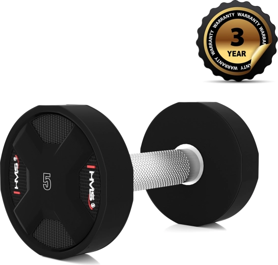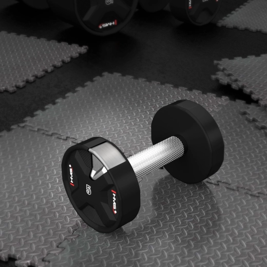 De HMS HPC halter van 5 kg is ontworpen voor veeleisende gebruikers die bij elke herhaling betrouwbaarheid en comfort eisen. De polyurethaan afwerking beschermt de vloer, dempt geluid en houdt de halter in perfecte staat, zelfs bij frequent gebruik. De verchroomde, gekartelde greep zorgt voor een stevige en zekere houvast zonder wegglijden.