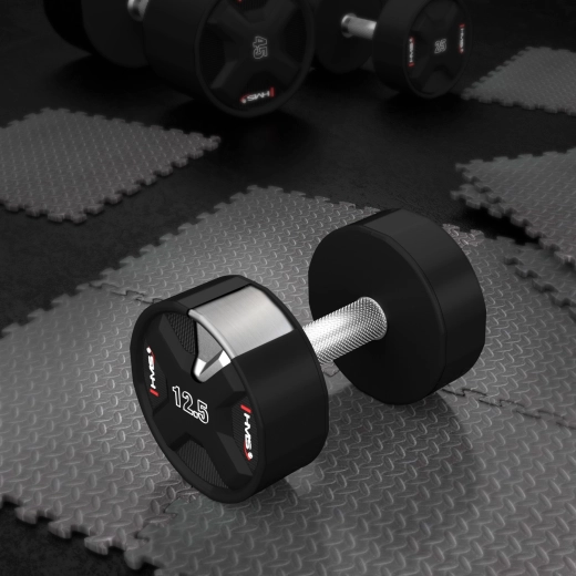 De HMS halter van 12,5 kg is ontworpen voor veeleisende gebruikers die betrouwbaarheid en constante prestaties willen bij elke herhaling. De polyurethaan (CPU) uiteinden beschermen de halter tegen schokken, beschadigen de vloer niet en behouden een elegante look, zelfs bij frequent gebruik.