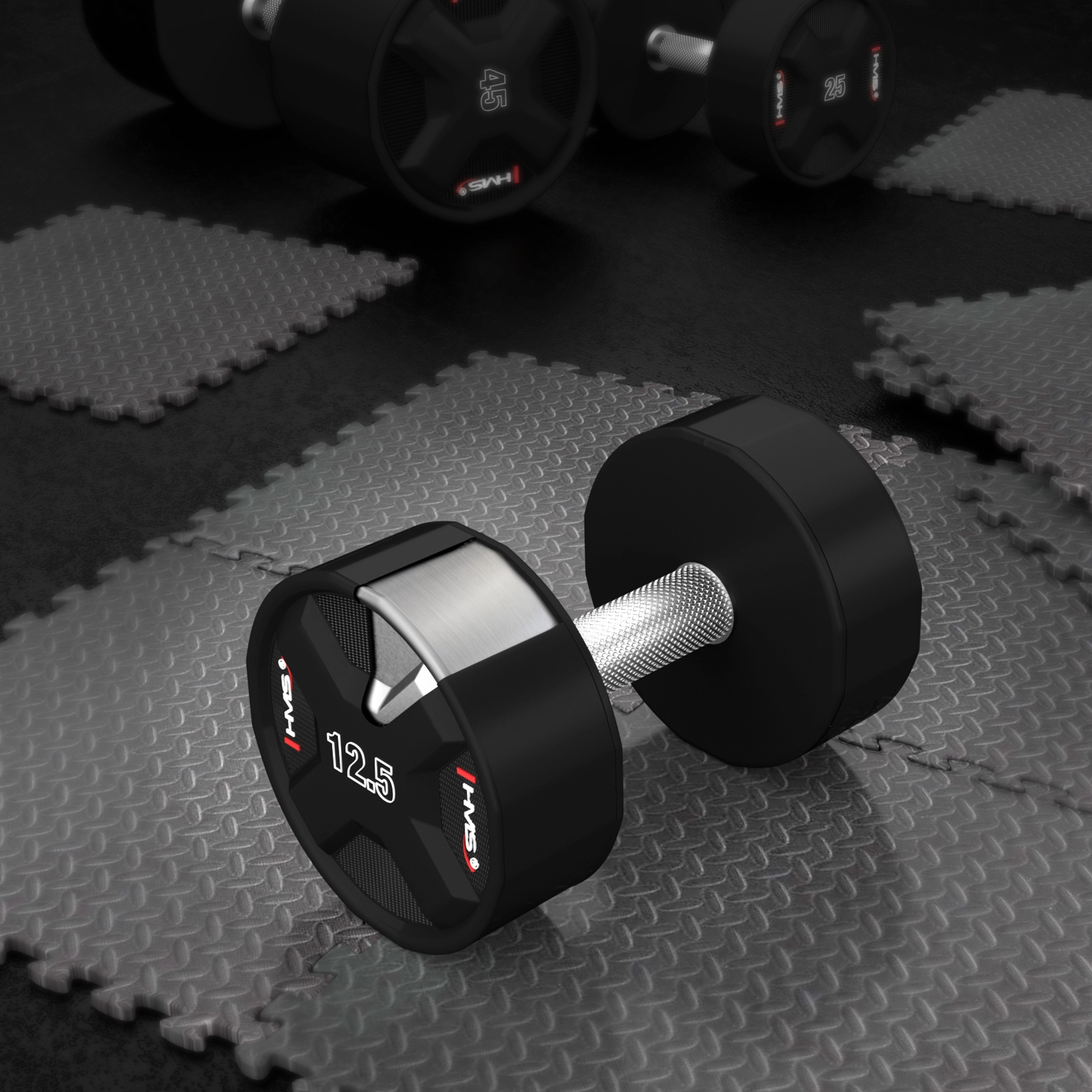 Het 12,5 kg model past in de volledige HMS-reeks van 2,5 tot 50 kg in stappen van 2,5 kg – ideaal voor systematische verhoging van de belasting.