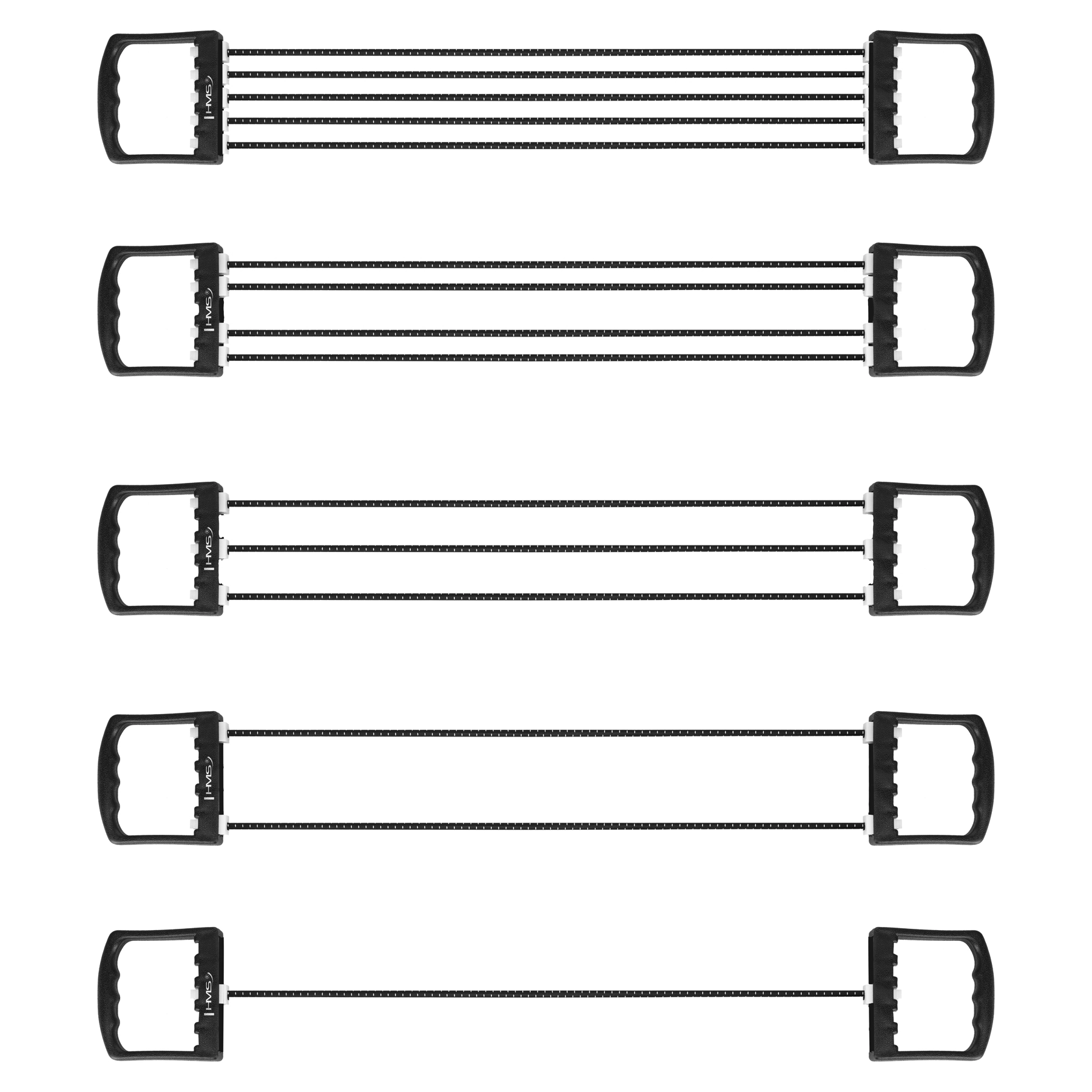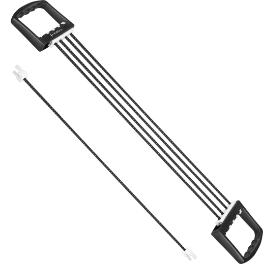 Universele rubberen HMS-expander met vijf verwisselbare strengen voor training van het bovenlichaam. Door strengen te verwijderen of toe te voegen stel je eenvoudig een variabele weerstand in voor het versterken van armen, rug en borst, maar ook voor revalidatieoefeningen. Ergonomische antislipgrepen van duurzaam plastic zorgen voor een zekere grip en comfort tijdens trainingen thuis en onderweg.